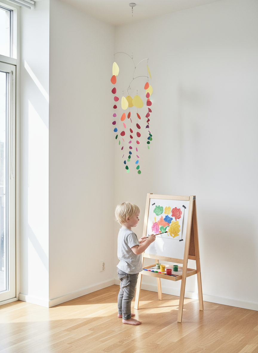 This is a high quality paper made mobile that hangs from nylon cord, with extra length for chosen height.